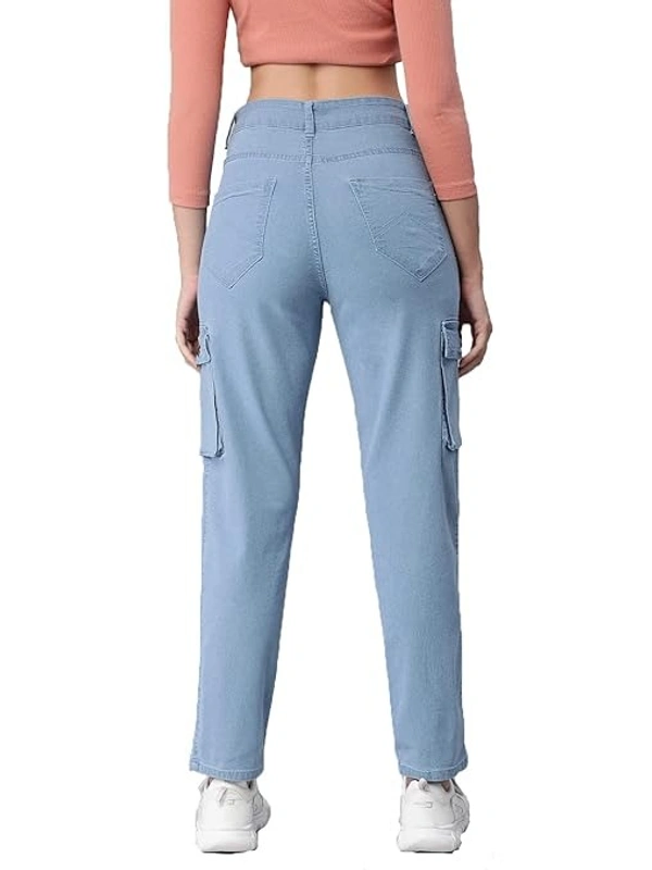 - Solid Denim Straight Fit High Rise Joggers Button & Zip closure, and 6 pockets.
