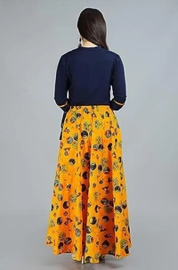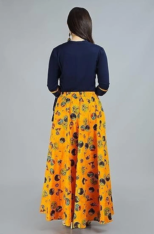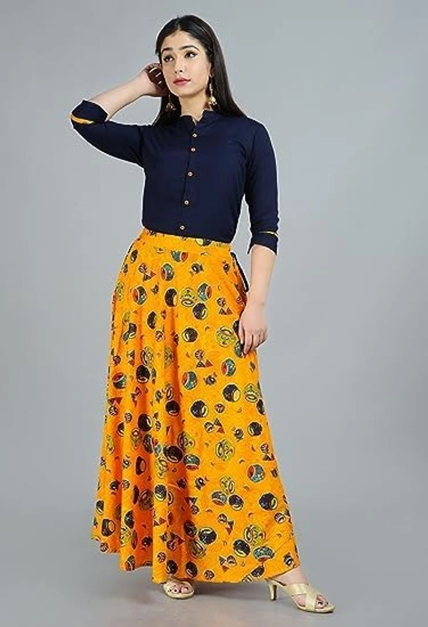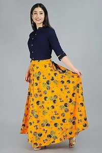 ALASHA Women's Rayon Yellow Skirt Top Blue Set Ready to Wear Rayon Blend Solid Topskirt An