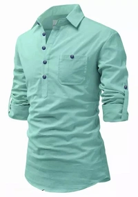 Name : Apektra Men's Cotton Fabric Roll Up Sleeve Slim Fit Spread Collar Short Kurta