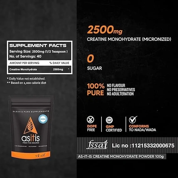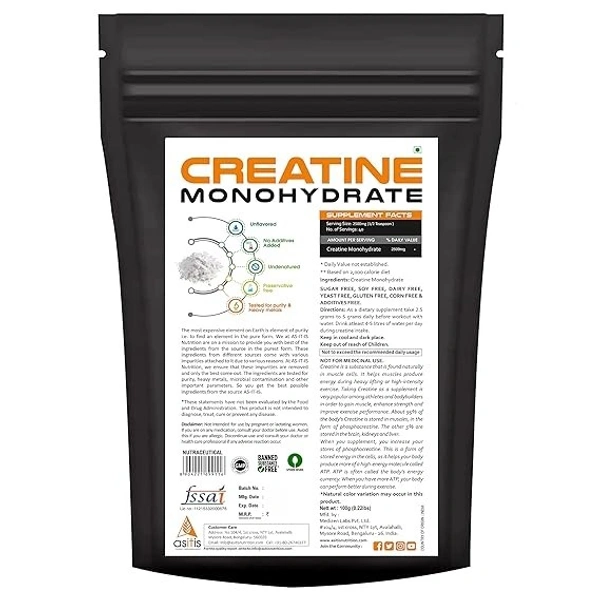 AS-IT-IS Nutrition Creatine Monohydrate 100gms | USA Labdoor Certified for Accuracy & Purity An