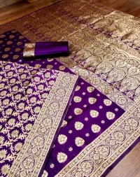 Banarasi Silk Purple Jacquard Saree With Blouse Mo