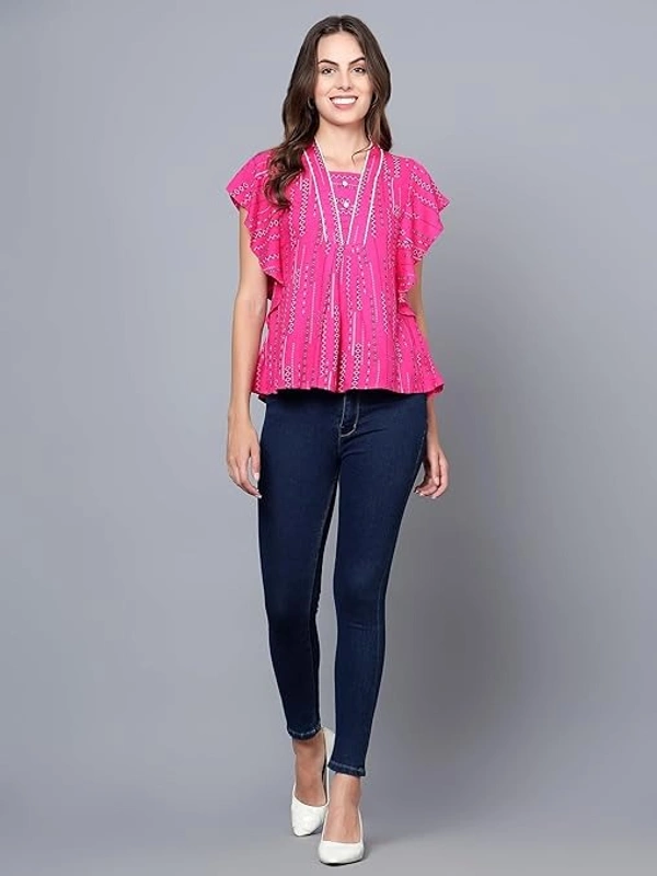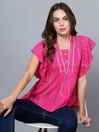 - This rayon indian- western top is the perfect fusion of traditional Indian and western styles. Made from high-quality rayon, it is soft, comfortable, and drapes beautifully. The top features a modern design with traditional Indian elements with lace work and prints. It is perfect for any occasion, from a casual day out to a special event.