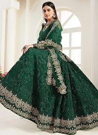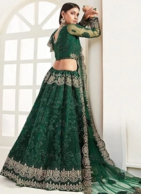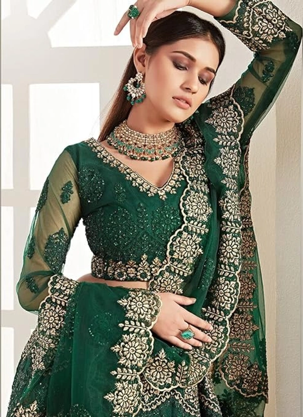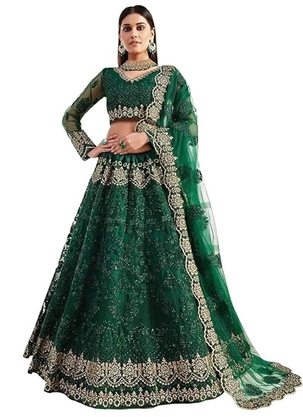 Bollyclues Women's Net Embroidered Semi-Stitched Lehenga Choli(2-Ton_Green_Free Size) An