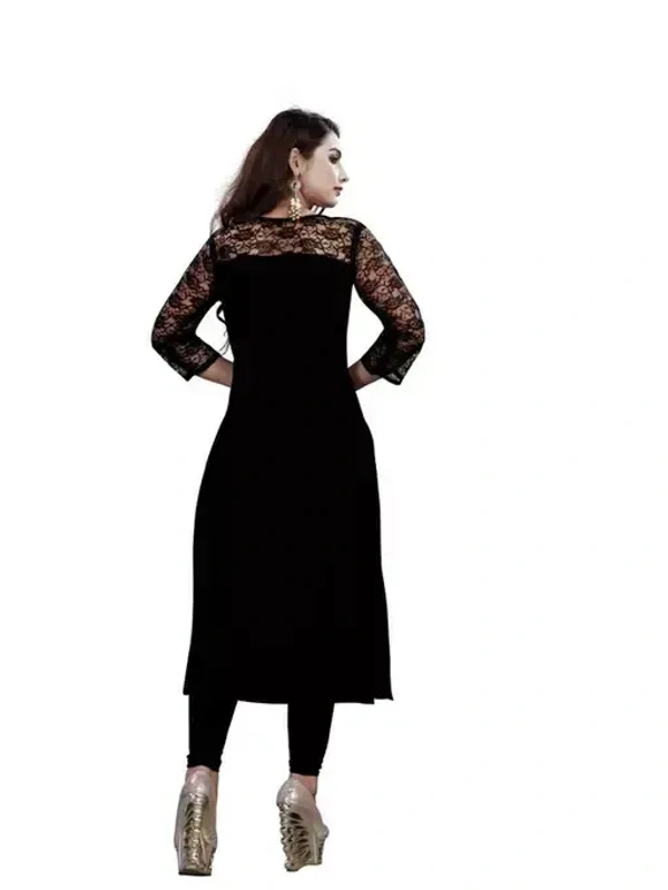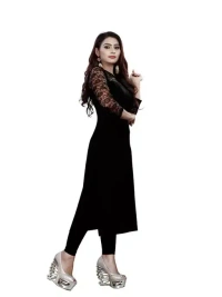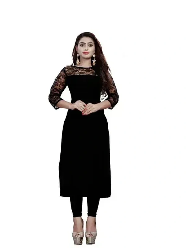 Name : Casual American Crepe And Net Round-Neck 3/4 Length Sleeves Black Kurti (45"Inches)