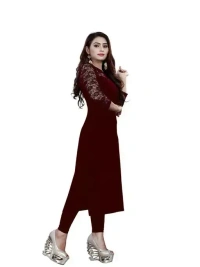 Name : Casual American Crepe And Net Round-Neck 3/4 Length Sleeves Maroon Kurti (45"Inches)