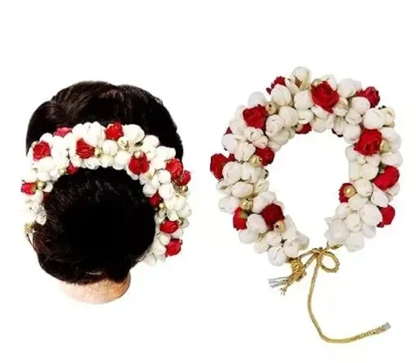 Name : Handmade Artificial Flower Floral Gajra Veni Clips Pins Brooch Hair Band Accessory Accessories Set for Bun Juda Long Hair Decoration for Woman and Girls in Fashion for Wedding Marriage Function and Parties.