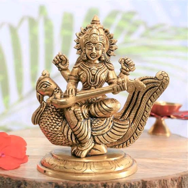 HOLYMONT99 Pure Brass More With Saraswati Ji Murti