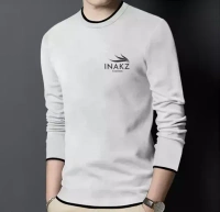 Name : INAKZ Mens Round Neck Printed Cotton Blend Full Sleeve Grey Korean Style Trending T-Shirt