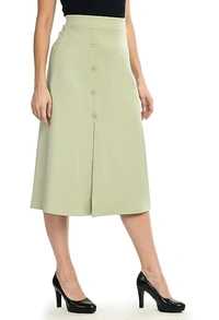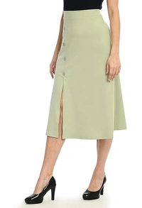 KLART Women's Midi Skirt with Side Slit and Buttons An