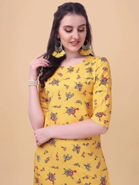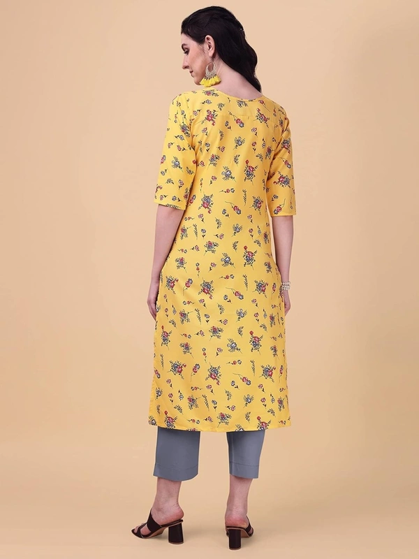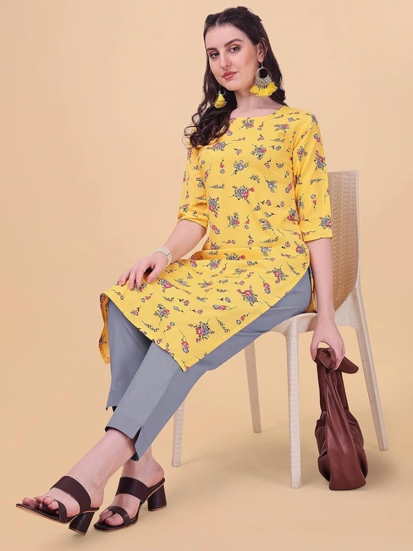 LookMark Women's Crepe Printed Regular Kurti | Kurta (K1100-S) Yellow AN