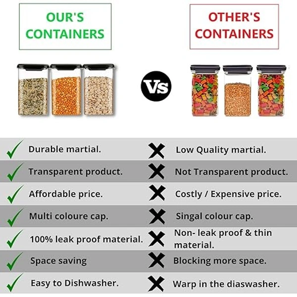 - Like Glass Container ___ Glass Type Feel With Square White Lid For Kitchen Dried Masla Storage Jar, Honey Jar, Jar And Container, Spice, Masala Jar, Visible Jar for Kitchen Storage. Perfect Kitchen Storage Container Set.