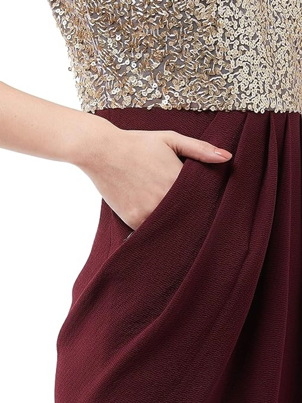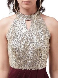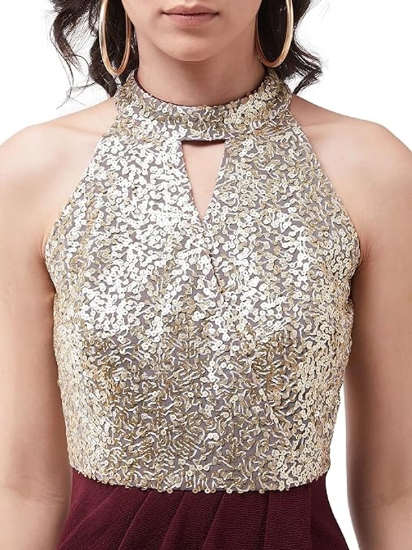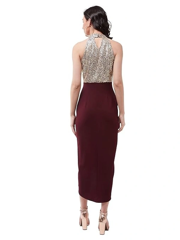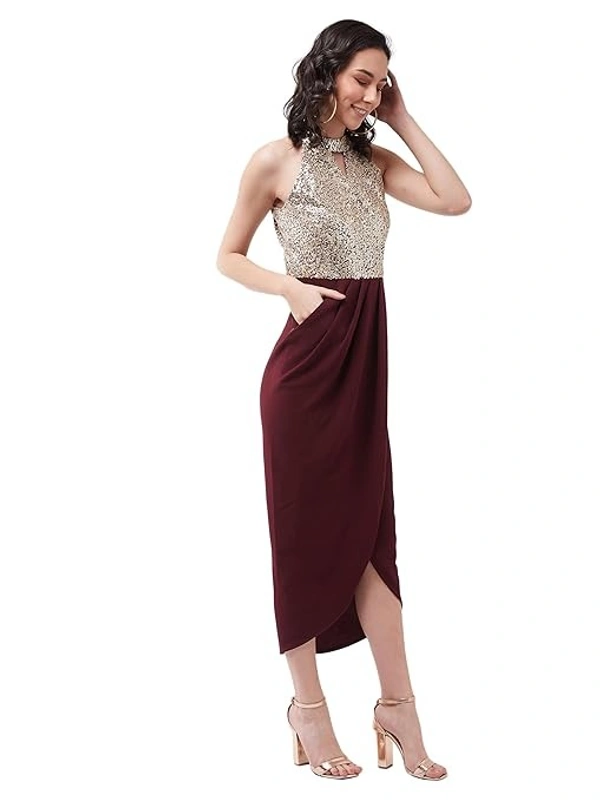 Miss Chase Women's Wine Halter Neck Sleeveless Solid Embellished Midi Dress An