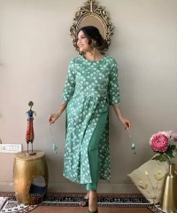 Step into the realm of refined grace, draped in the intricate elegance of our Handblock Print Kurta Palazzo combo, an ensemble that resonates with the essence of tradition and contemporary allure.