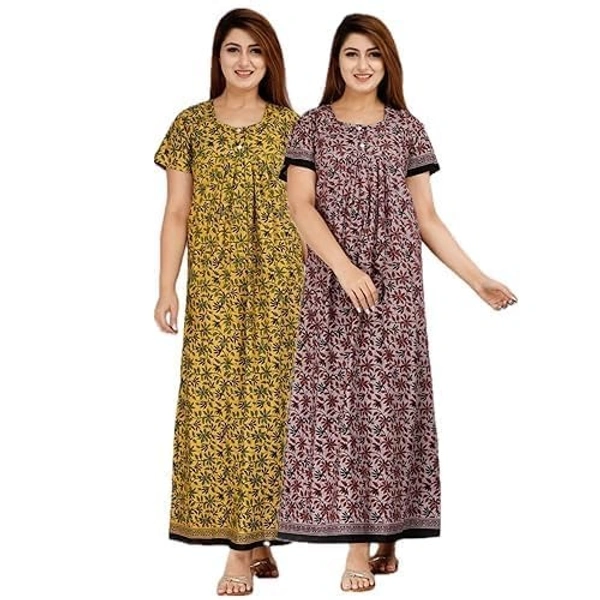 NEGLIGEE Nighty for Women Cotton Printed Maxi Gown Ankle Length Nighty Night Dress Gown for Women Maxi - Free Size (Pack of 2) An