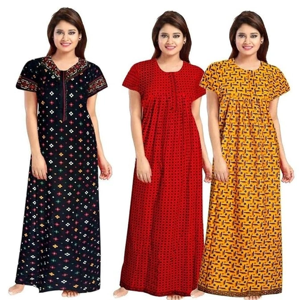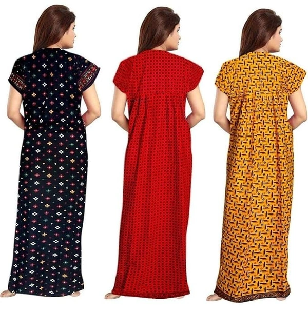 NEGLIGEE Women's Cotton Geometric Print Knee Length Nighty (Pack of 3) (GW3C050607_Multicolored_Free Size) An