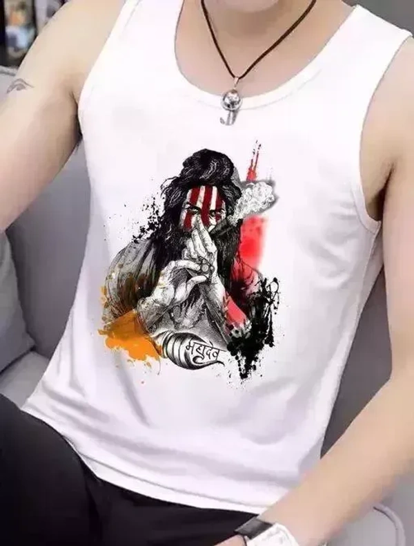 Name : OJSR MENS WHITE PRINTED ROUND NECK SLEEVELESS VESTS