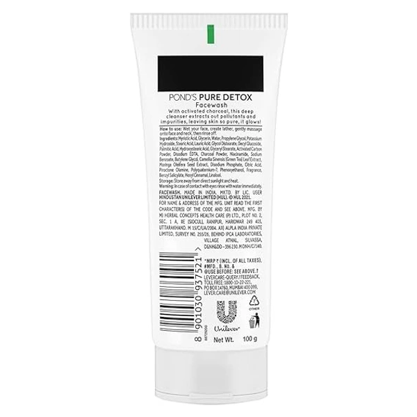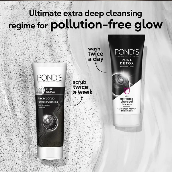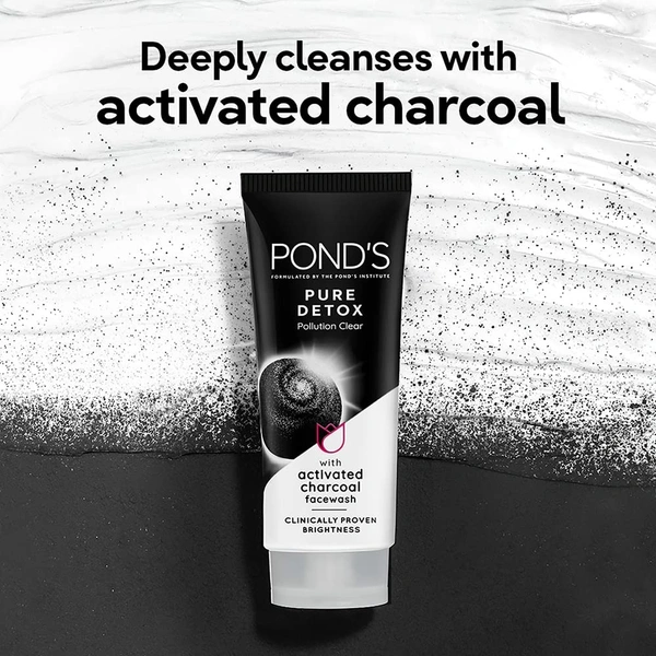 POND'S Pure Detox, Facewash, 100G, For Fresh, Glowing Skin, With Activated Charcoal, Daily Exfoliating & Brightening Cleanser, Pollution Clear Face Wash An