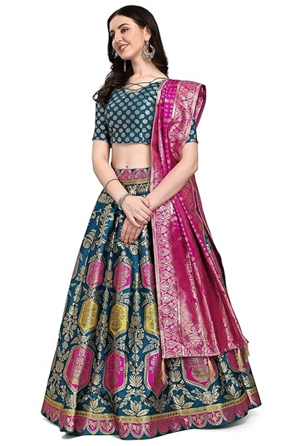 PURVAJA Women's Jacquard Semi-Stitched Lehenga choli An