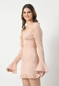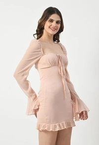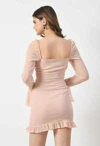 Smera Mart Chiffon Square Neck Short Bodycon Dress for Women An