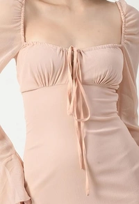 - Square Neckline with Drawstring: The square neckline with a drawstring and self-tie knot adds a touch of uniqueness. || A small cut-out on the front provides a subtle