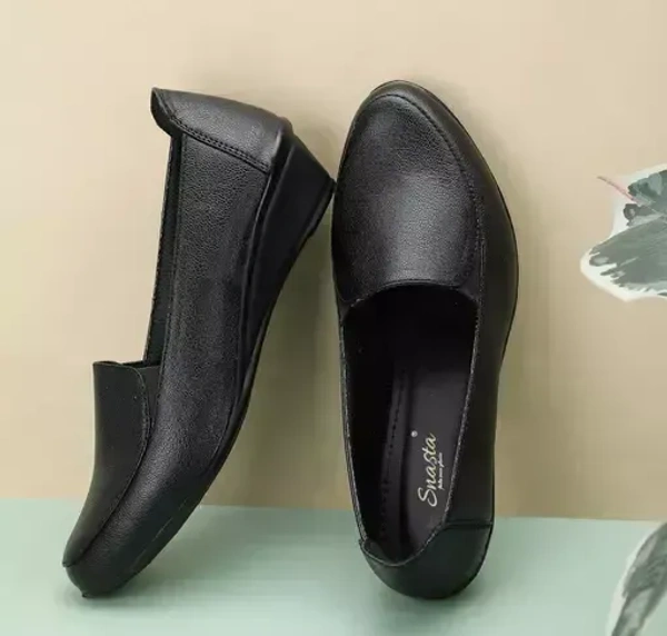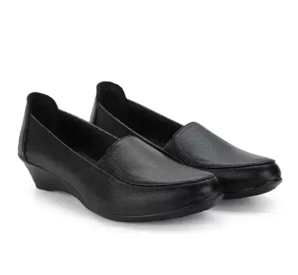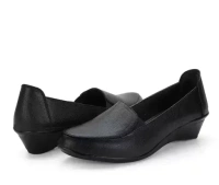 These sleek and sophisticated formal ballerina shoes are crafted in a timeless solid black hue. Featuring a closed vamp and a chic pointed toe design, they exude elegance and refinement. The 1.5-inch wedge heel offers both style and comfort, making them perfect for formal occasions. Slip-on adds practicality to their sophisticated appeal. Elevate your ensemble with these versatile and classy ballerina shoes, seamlessly blending fashion and functionality.
