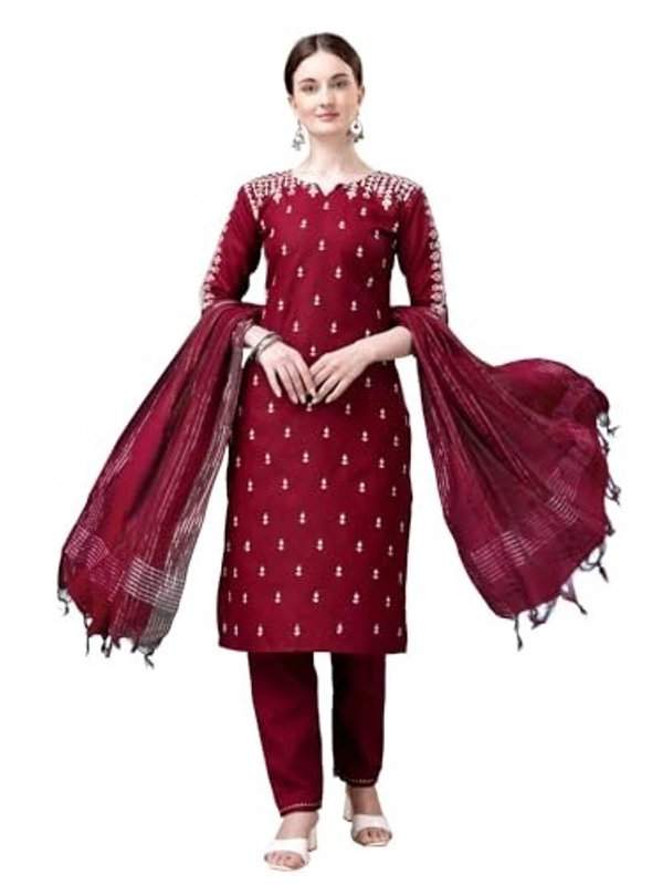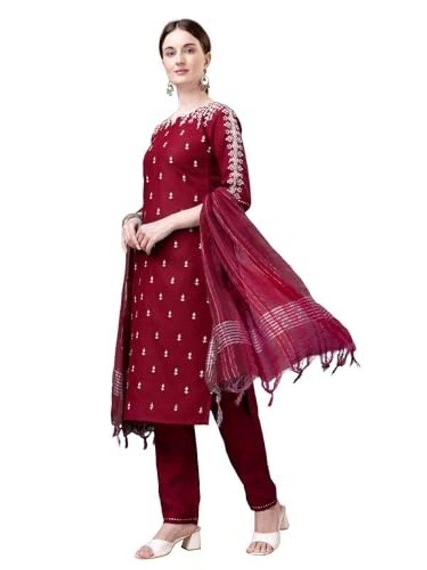 VEDANSHI Women's cotton bleand with embroided & sequence work and fully stiched kurti and with pant & dupatta (multicolor, pack of set 1) AN