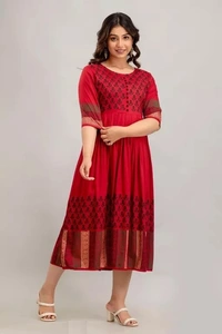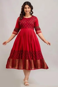 The rayon kurti makes it look so elegant and a modern style-statement. This kurta helps you looking a sophisticated look and enhance the beauty of the women which can be worn for functions, festivals, parties and even wedding also. You will be a center of attraction in the event once you wear it. This floral print anarkali kurta has a, round neck, three-quarter regular sleeves, flared hem and calf length. These trendy & stylish anarkali kurtas are exclusive and we just launched only on Meesho at lowest price with finest quality. Grab the deal at best price. This type of prints have always been popular in Indian ethnic wear. This printed rayon anarkali can make you look unique and stand out in a crowd. We also providing you many styling options in this catalog and these kurtis can be worn anywhere. When it comes to Anarkali Kurtis, floral printed designs are extremely popular as well. Ethnic prints like block prints, Paisley florals, and Kalamkari are being adored these days. We come in a comprehensive range of shades and colours. These Anarkali Kurtis are made in light flowy fabrics which is soft. The rayon kurti makes it look so elegant and a modern style-statement. This kurta helps you looking a sophisticated look and enhance the beauty of the women which can be worn for functions, festivals, parties and even wedding also. You will be a center of attraction in the event once
