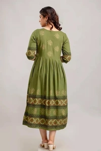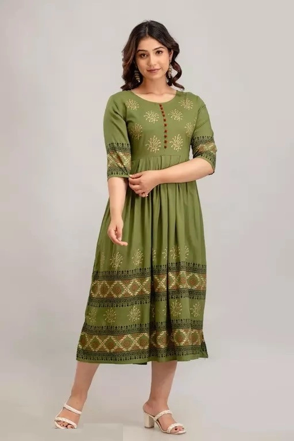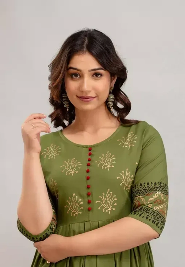 The rayon kurti makes it look so elegant and a modern style-statement. This kurta helps you looking a sophisticated look and enhance the beauty of the women which can be worn for functions, festivals, parties and even wedding also. You will be a center of attraction in the event once you wear it. This floral print anarkali kurta has a, round neck, three-quarter regular sleeves, flared hem and calf length. These trendy & stylish anarkali kurtas are exclusive and we just launched only on Meesho at lowest price with finest quality. Grab the deal at best price. This type of prints have always been popular in Indian ethnic wear. This printed rayon anarkali can make you look unique and stand out in a crowd. We also providing you many styling options in this catalog and these kurtis can be worn anywhere. When it comes to Anarkali Kurtis, floral printed designs are extremely popular as well. Ethnic prints like block prints, Paisley florals, and Kalamkari are being adored these days. We come in a comprehensive range of shades and colours. These Anarkali Kurtis are made in light flowy fabrics which is soft. The rayon kurti makes it look so elegant and a modern style-statement. This kurta helps you looking a sophisticated look and enhance the beauty of the women which can be worn for functions, festivals, parties and even wedding also. You will be a center of attraction in the event once