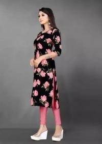Name : Women's Black Crepe Digital Printed Straight Kurti (Pack Of 1)
